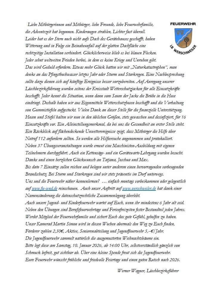Löschbezirks WERSCHWEILER