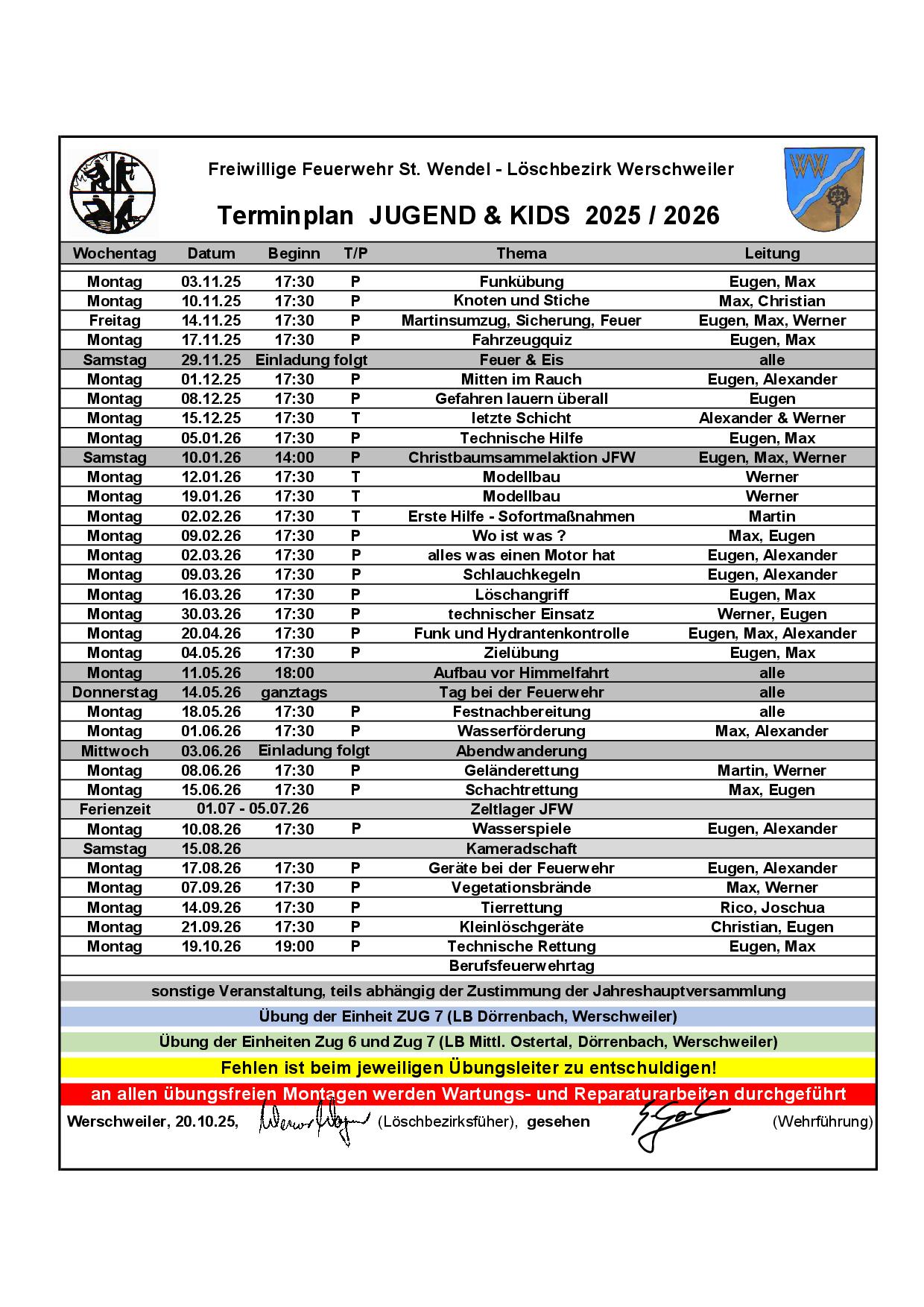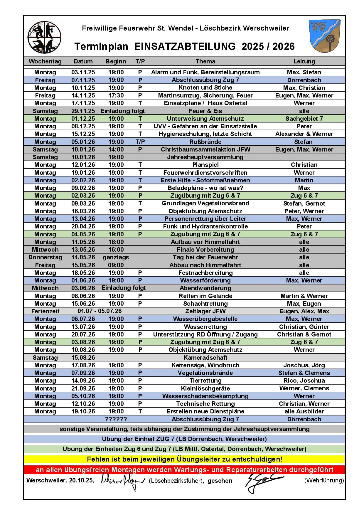 montags, 1., 2. und 3. des jeweiligen Monats Jugendfeuerwehr & Zug7Zwerge ---- 17:30 Uhr Aktive/Einsatzabteilung -------------- 19:00 Uhr |